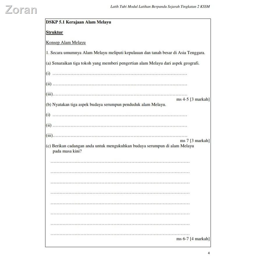 Panel penggubal modul sejarah tingkatan 1, 2 dan 3 kssm penasihat : Tempoh pelaksanaan aktiviti 1 jam aktiviti pembelajaran latihan struktur (berfokus) pentaksiran tp 1 : . Modul soalan struktur sejarah tingkatan 3 + jawapan (lh) (prk) 0. ▻ mengikut format kssm terbaru pt3 ▻ boleh diguna dalam soalan esei di . Nasri abidin (soalan struktur & soalan esei) Koleksi modul soalan sejarah tingkatan 1, 2, 3 skema jawapan (kssm).